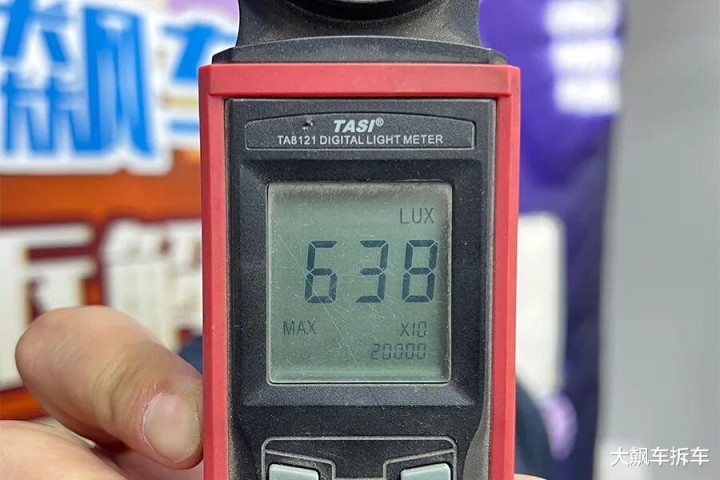 这辆车的大灯是LED光源,最大光照度为6380勒克斯,照明度比较不错。