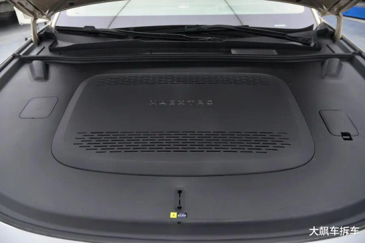 目前这款车有纯电版和增程版,还有前后双电机和三电机之分。我们这辆车是顶配增程版本,前后三电机。系统最大功率635千瓦,最大扭矩718牛米,百公里加速4.7秒。